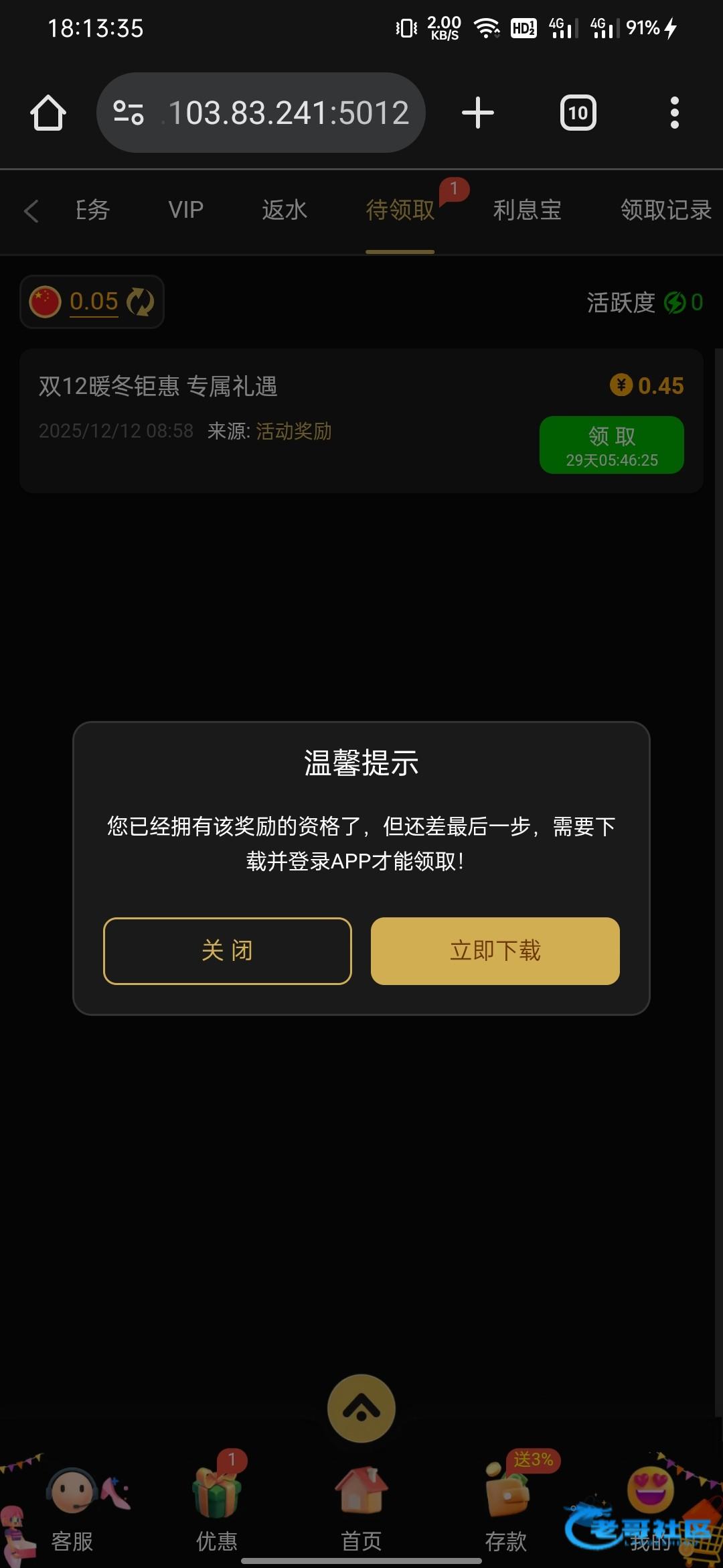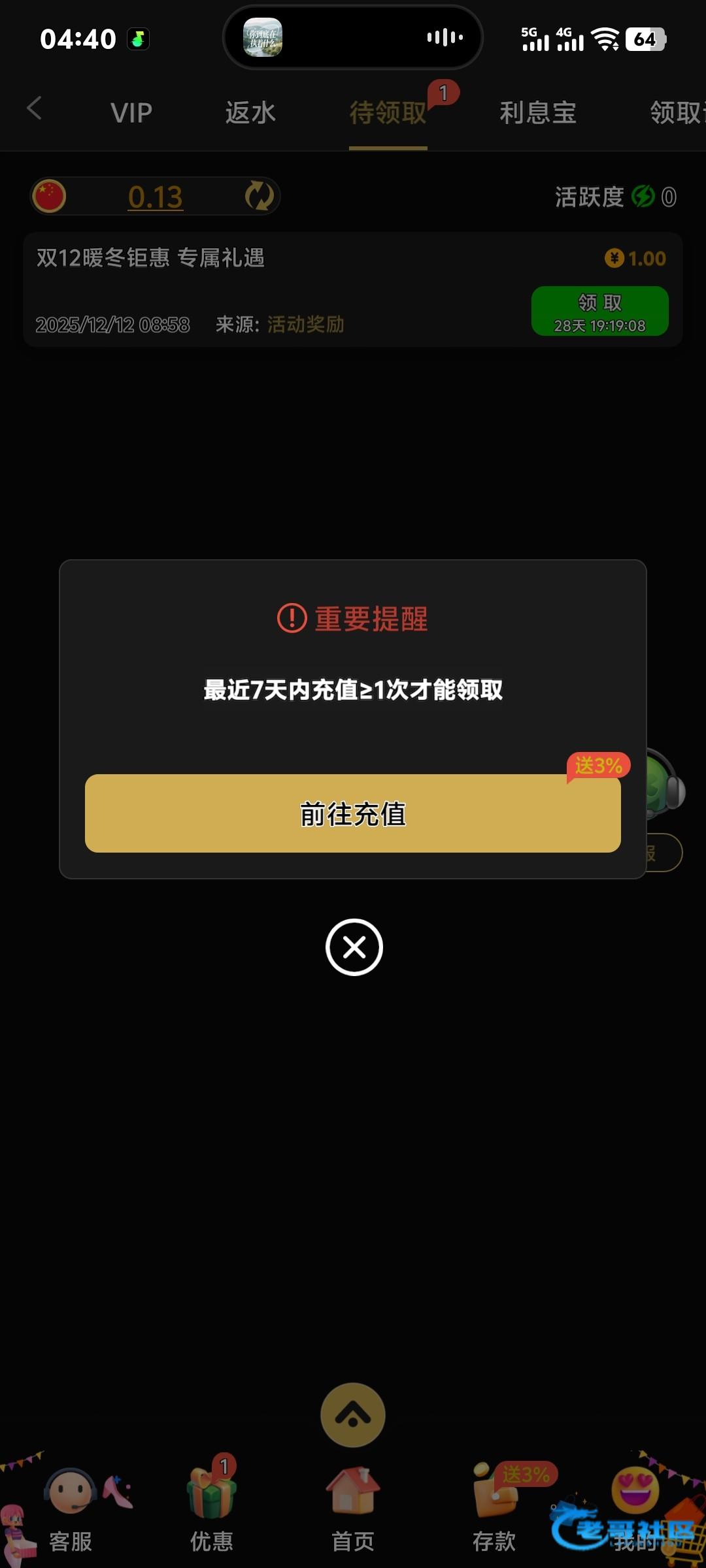 老用户充值娱乐过的应该都有 等下就能领取了