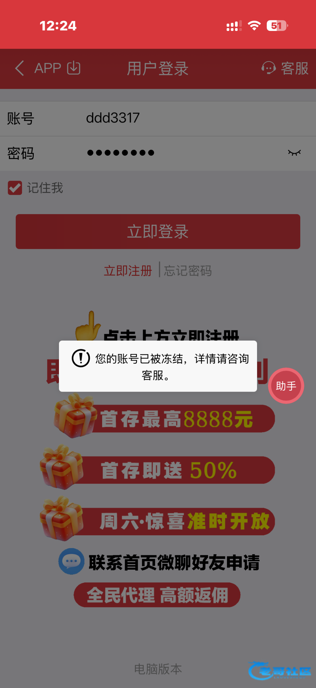 充了 300 提 500 直接冻结账号